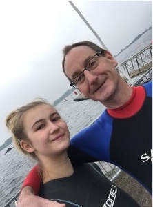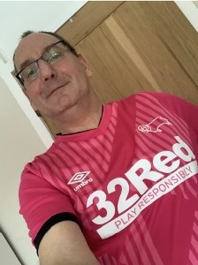Tim is pictured modelling limited edition pink WSC attire as well as the pink Derby County shirt he received from us, and with his daughter Tammy.